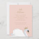 Adorable ballet themed little girls party invitation featuring a sweet illustration of a ballerina in a tutu dancing on stage in a light pink, silver and gold colour palette.