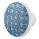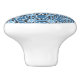 This ceramic cabinet knob is shown in white with a blue abstract print.