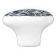 This ceramic cabinet knob is shown in white with a blue grey abstract print.