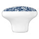 This ceramic cabinet knob is shown in white with a blue and white butterfly flourish print.