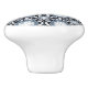 This ceramic cabinet knob is shown in white with a blue and white tile pattern.