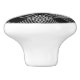 This ceramic cabinet knob is shown in white with a black plaid print.