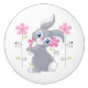 This ceramic cabinet knob is shown in white with a cute bunny and pink flowers print.