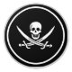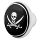This ceramic cabinet knob is shown in white with a black background and a pirate skull and blades print.