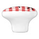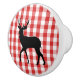This ceramic cabinet knob is shown in white with a Red plaid print with a deer print.