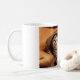 Ceramic coffee mug shown with a photo print of a cute dog and kitten getting cosy Customise this item or buy as is. Stock Image