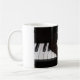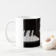 Ceramic coffee mug shown with a photo print of a cute kitten sleeping on the piano. Customise this item or buy as is. Stock Image