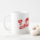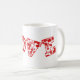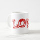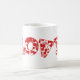 This ceramic coffee mug is shown with a Valentine love hearts print.