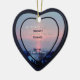 Ceramic Heart Christmas Ornament with the Serenity Prayer in the centre. Colours are med/dark blues with pinkish colouring in the centre. The centre background is an actual photo I took while driving down the road when I saw a beautiful cross appear during sunset. I have a pink version of this ornament available as well.
