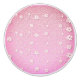 CERAMIC KNOB WITH WHITE FLORAL DESIGN AND A PINK BACKGROUND.
