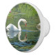 THIS DECORATIVE CERAMIC KNOB FEATURES A WHITE SWAN ON A LILY POND. THE LUSH GREEN FOLIAGE SURROUNDING THE POND AS WELL AS THE SWAN ARE REFLECTED IN THE WATER.