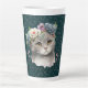Ceramic Latte Mug - Cute Cat & Wildflowers