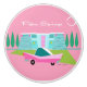 Between the pink background, turquoise mid century modern home, and the classic 1950s car, this design couldn’t be more Palm Springs if it said it in the clouds. Oh, wait, it does say it in the clouds! The blue and teal stone of the house is offset by the sputnik light fixtures framing the hot pink door. This kitschy, retro design welcomes you to live your most fabulous life