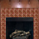 The colours include ochre, and peach, on a wine background. Use this on your kitchen backsplash, bathroom or fireplace. It's perfect for your country cottage or farmhouse. This design comes from Oregon tile maker Fay Jones Day.