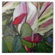 THIS CUSTOM CERAMIC TILE CAN BE PRACTICAL AND/OR DECORATIVE: USE FOR DISPLAY OR AS A TRIVET FOR YOUR HOT DISHES. IT FEATURES RED ANTHURIUM AND INCLUDES GREEN FOLIAGE AND MAUVE-PINK AND WHITE LEAVES IN BACKGROUND.