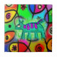 Ceramic Tile Whimsical Dog Colourful Pattern