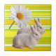 Ceramic Tile Yellow Green Daisy Stripe Rabbits