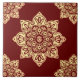 Ceramic tile, yellow medallion on maroon ceramic tile