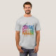 This fun and playful t-shirt features the phrase "Cereal Killer" in vibrant, multi-coloured letters, surrounded by playful cereal box graphics and scattered cereal pieces. It's perfect for cereal lovers and those who appreciate a bit of quirky humour.