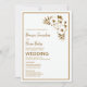 Invite your friends and loved ones with this detailed gold floral wedding invitation which includes both the ceremony and reception locations for couples who are choosing to exchange their vows in one location and celebrate their new status at another, which therefore helps you plan your day with less fuss, complications, and expense.