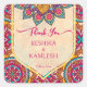 Cerise mandala rangoli personalised name wedding thank you stickers. Vibrant colours to match the celebration vibe.