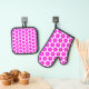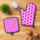 Cerise Pink Flower Design Oven Mitt & Pot Holder Set