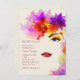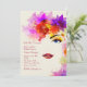 A stunning invitation featuring a partial view of a woman's face surrounded with lots of dazzling, colourful flowers.