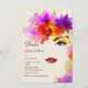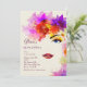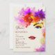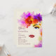 A stunning invitation featuring a partial view of a woman's face surrounded with lots of dazzling, colourful flowers.