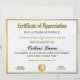 Certificate of Appreciation - Gold Frame Work
