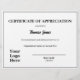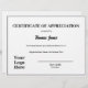 This is a template award for a certificate of appreciation. It has text you can edit to show the recipient's name in an elegant script. You can also edit the other text to customise the award for your occasion and organisation. There's a line for the person giving the award to sign on. You can also have that person's name and title printed under the line. A display image is near the bottom that you can replace with your organisation's logo. The paper is white. The text is black.