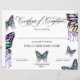 Certificate of Completion Award Course Completion with monarch butterfly for life coach, cosmetics, beauty salon, nail artist, makeup artist, hair stylist... with holograph monarch butterfly