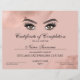 Certificate of Completion Makeup artist Wink Eye Beauty Salon Lash Extension Course Completion