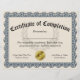 Letter size 8.5"x11" Certificate of completion to award staff, students, employees or anyone for any course, school or program. Custom design in elegant green and tan with a faux gold seal. Show your pride and enthusiasm about the efforts of your students and staff with this customisable, personalised certificate. Pretty rosette vintage woodcut art border with classic style. Add your own text online, and order certificates custom made for your ceremony. Leave the signature area blank to add a signature later, or type your name and title, and still add your signature above. Honoree's name can be typed in or the blank line can be left to add hand-written or printed names later.