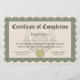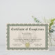 Certificate of completion for any course, school or program. Custom design in elegant green and tan with a faux gold seal. Show your pride and enthusiasm about the efforts of your students and staff with this customisable, personalised certificate. Add your own text online, and order certificates custom made for your ceremony. Pretty rosette vintage woodcut art border with classic style.