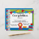Completion Certificate Award for Pre-school, Pre-K, Kindergarten or any course or program. Add your own title and details to this Customisable Kids school award participation certificate Letter size 8.5"x11". Custom design with stacks of books, bunting banner flags and red ribbon seal. Great to use for preschool, pre-k, kindergarten, elementary primary school! Show your pride and enthusiasm about the efforts of your students and staff with this customisable, personalised certificate. Add your own text online, and order certificates custom made for your summer camp, extra-curricular activity, math, stem, steam, science, robotics, engineering, or elective program. Leave the signature area blank to add a signature later, or type your name and title, and still add your signature above. Honoree's name can be typed in or the blank line can be left to add hand-written or printed names later.