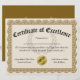 Certificate of Excellence Gold Customisable 8.5x11