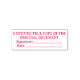 Ensure professional and accurate document verification with this Certified True Copy rectangular self-inking stamp featuring dedicated lines for signature and date. Designed for offices, legal professionals, schools, and administrative use, this stamp creates clean, clear, and consistent impressions every time. The practical layout allows quick certification of important documents while maintaining an official and organized appearance. Durable, reliable, and easy to use, this stamp is perfect for daily professional documentation needs.