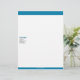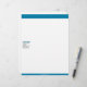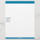 A classic cerulean blue bars letterhead, available in 5 paper types. The design features your company name (in cerulean blue) and company message (in black) at the top, followed by lines of optional addresses and contact information (in grey), all nestled between two cerulean blue bars of different heights at the top and bottom of the page. In the bottom bar is an optional web address (in white).