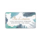 Contemporary holiday sticker with a personalised address on an abstract blue paint strokes background.