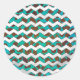 Cevron Dalmatian Brown and Teal Classic Round Sticker