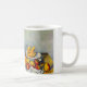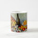 Cezanne The Basket of Apples mug. Oil painting on canvas from 1894. Paul Cezanne was a master still life painter and The Basket of Apples is his most famous work. The painting features a wine bottle, plate of bread, and whicker basket full of red, green and yellow apples on a white table cloth. A great gift for fans of Cezanne, post-impressionism, and kitchen prints.