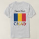 Design, on a men's T-shirt, features the Chadian Flag with the word, CHAD, below in the tricolor. Above you will find a place for your name to add a personalised look, or, create a customised gift. The flag of Chad is three vertical stripes, one each: blue, red and gold. Travelers and those of Chadian ancestry will love it.