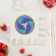 Japanese water lily design given radically new look in Leslie Sigal Javorek's original digital painting adorning this napkin. Appears made w/ ceramic tiles in lilac, periwinkle, blue, aqua & ivory; at centre is Hebrew "Chai" (Life). Pretty enough for the holidays or parties.