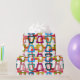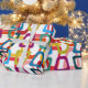 This wrapping paper has a mid-century modern design of rounded triangles in rows.