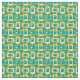 This fabric has a mid-century modern design of rounded rectangles with ovals inside in retro colours of turquoise, teal, off-white, and gold. If you want the same design with different colours, message me.