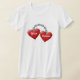 Two red hearts chained together design t-shirt with a customisable script name (up to seven letters) on each heart. (For light colour shirts only).