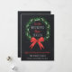 Vintage Chalk Holiday Wreath Decking The New Halls Moving Announcement Card with Snow Covered Holly Branch on Back