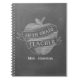 A spiral notebook featuring a chalk inspired illustration of an apple covered with a banner that says "FIFTH GRADE TEACHER" over a chalkboard inspired background. Personalise with your name.