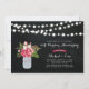 A stylish rustic wedding anniversary invitation featuring mason jar & flowers bouquet with a chalkboard background.