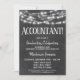 A fun black and white chalkboard accountant graduation party invitation with glowing lights at the top.